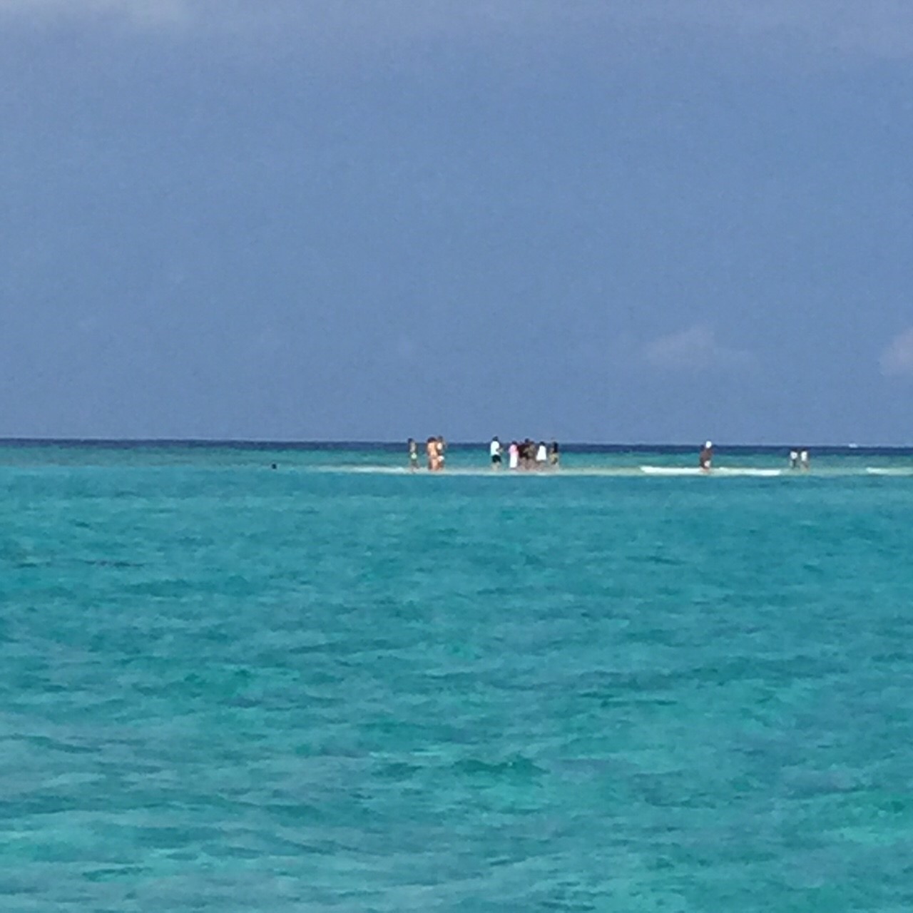 ボートが近づくに連れ、徐々に潮が引いてきて、なんと目の前に、ポッカリと白い砂浜が見えて来ました!!