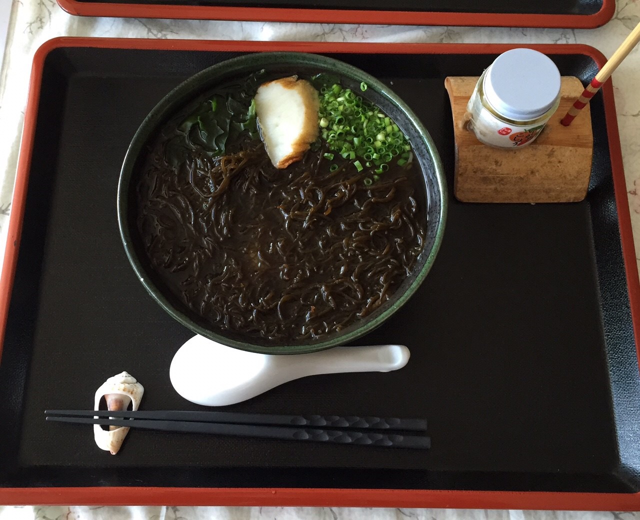 お腹の空いた私たちは、「お食事処味咲」というお店で、もずくそばをいただくことにしました。